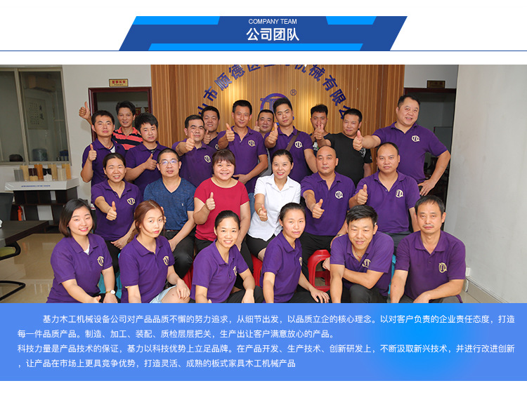 基力木工機械設備公司位于木工機械重鎮——佛山市順德區倫教鎮內。我廠擁有眾多專業技術人員和高素質的生產工人,堅持不斷研究、開發、創新,多方吸取廣大用戶的寶貴意見,努力從實用靈活、適用面廣、維修方便加以改進設計成高品質的木工機械產品。     經過我們不斷努力,本廠的產品以質量保證,設計創新,價格合理而贏得了國內外經銷商及用戶的認同...